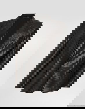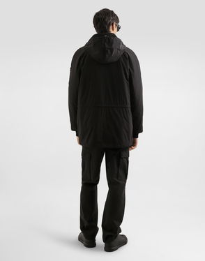 Leather And Technical Fabric Jacket With A High Neck And Tag