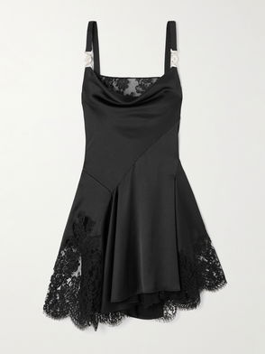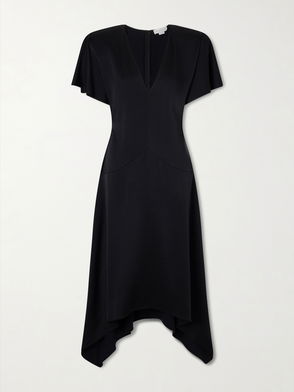 Paneled Hammered-Satin Midi Dress