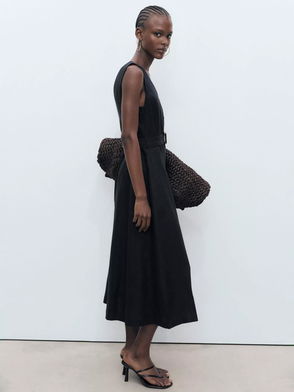 Brown Sleeveless Linen Cotton Blend Mini Dress