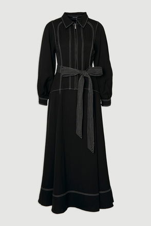 Premium Linen Twill Topstitch Woven Maxi Dress