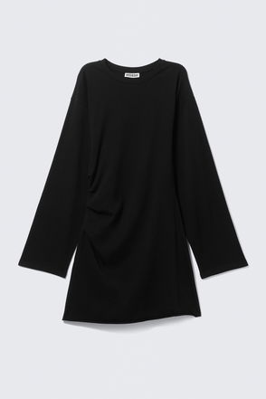 Gathered Long-Sleeved Boat-Neck Mini Dress