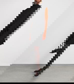 Sculptured Mini Dress With Volume Sleeves And Marked Waist In Black