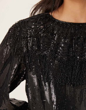 Sequins Mini Dress With Keyhole Collar In Dark Black Exclusive To Asos