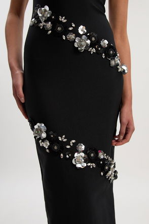 Beaded Rhinestone-Embellished Stretch-Woven Maxi Dress