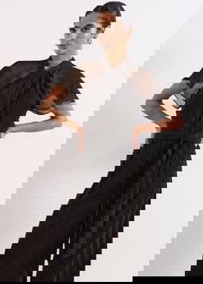 High Neck Long Sleeve Soft Twisted Midi Dress In Black
