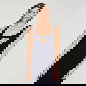 100% Leather Square Neck Sleeveless Midi Dress In Black