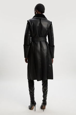 Faux-leather Coat With Fur Trim