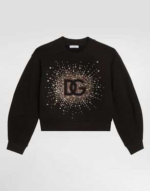 Oversized Fleece Trousers With DG Logo And Rhinestones