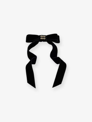 Logo-Plaque Bow Cotton-Velvet Hair Clip