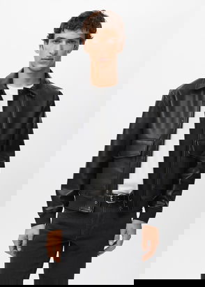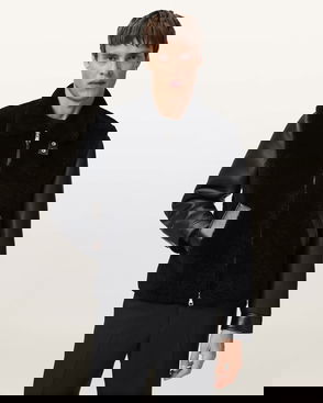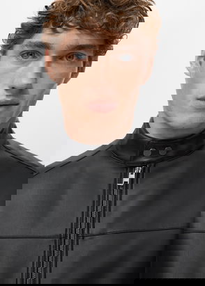 Monogram Embossed Leather Jacket Relaxed-Fit In Black