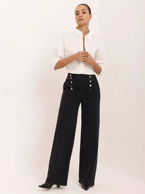 70s Style Mid Rise Bell-Shaped Jeans, Black