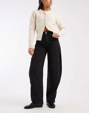 Featuring Kaia Gerber 100% Cotton Hotfix Barrel Jean In Black