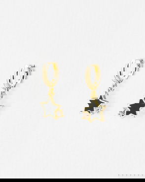 Madden Black Enamel & Stone Heart Drop Mini Huggie Earrings