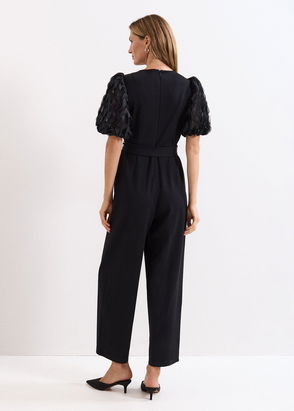 Petite Plunge-Neck Split-Sleeve Jumpsuit In Black