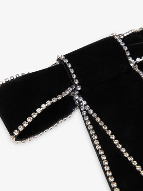 Rhinestone-Embellished Bow Velvet Barrette