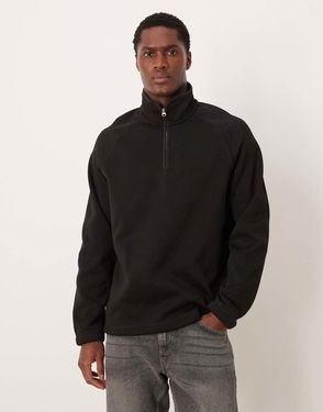 Pure Cotton Half Zip Fleece Sweatshirt In Black