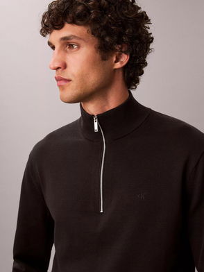 Cotton Half Zip Knit Jumper, Black
