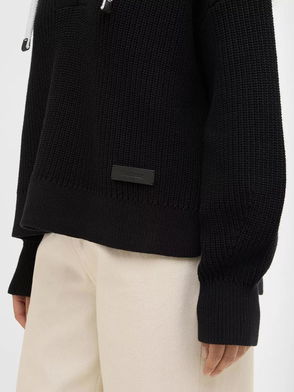 Daya Tie Front Knitted Hoodie, Black