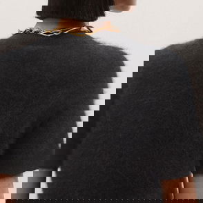 Brushed Cashmere Button Through Straight Knit Tee Black