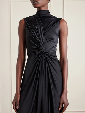 Asymmetric Draped Knotted Satin-jersey Dress