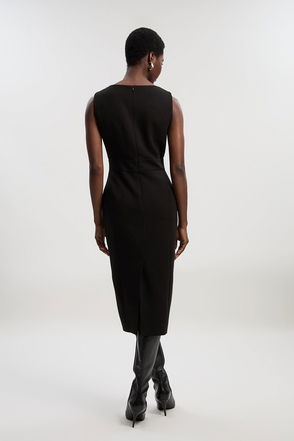 Compact Essential Tab Waist Pencil Midi Dress
