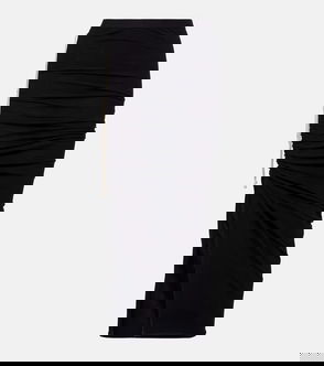 Gyelle Ruched Draped Polka-Dot Stretch-Jersey Midi Skirt
