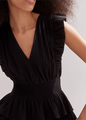 Cheesecloth Fit And Flare Short Dress Black