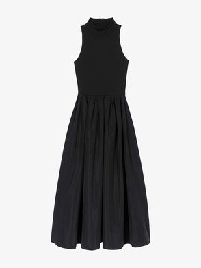 Sleeveless High-Neck Taffeta Midi Dress