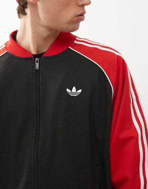 Loose Mesh Track Top In Black