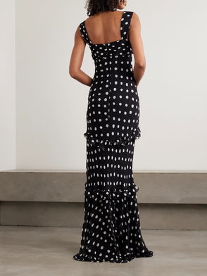 Selma Ruched Ruffled Polka-dot Crepe De Chine Maxi Dress