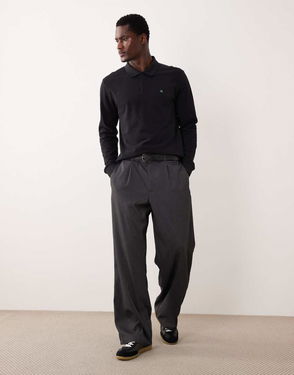 Willys Wool Regular Fit Long Sleeve Polo Shirt, Black