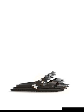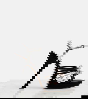 Clarita Bow-Detailed Lace-Trimmed Leather Sandals