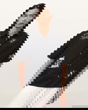 Textured Cuban-Collar Shirt In Black