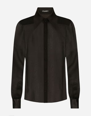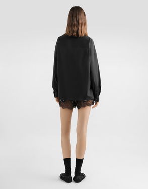 Short-sleeved Silk Blouse With Pussy-bow And All-over DG Logo Scarf Print