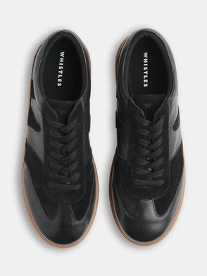 Suede & Leather Lace-Up Trainers, Black