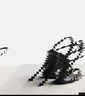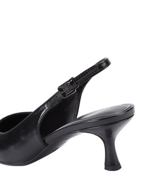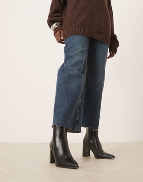 Faux Leather Pointed Heeled Ankle Boot In Black