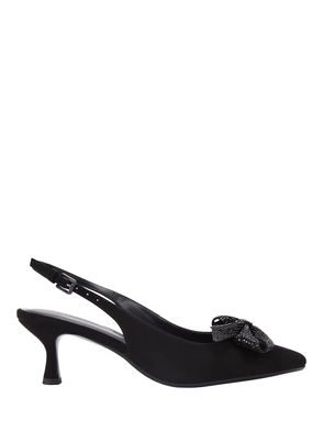 Tilly Bow Gem Kitten Heel Court Shoes, Black