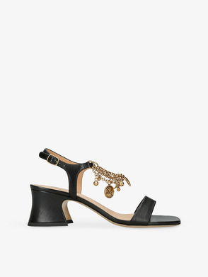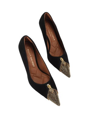 Rhinestone-Embellished Heeled Leather Mary-Jane Pumps
