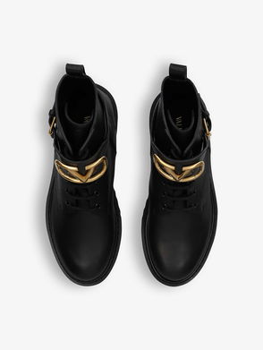 Minimal Grill Beatle Leather Platform Ankle Boots