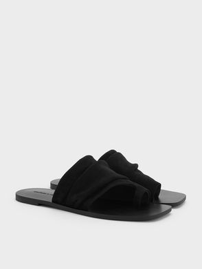 Faux Suede Ruched Toe-Ring Sandals