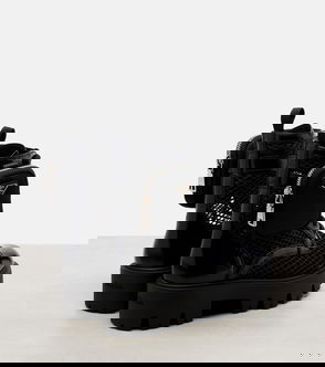 Leather-trimmed Mesh Combat Boots