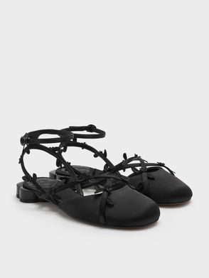 Floral-Vine Ankle-Strap Flats