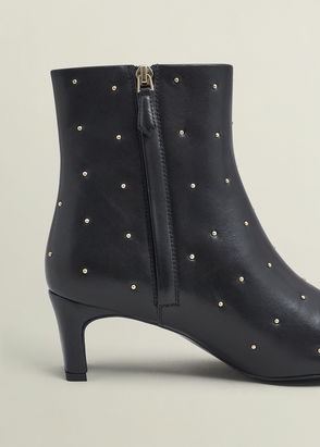 Clarita Bell 85 Bow-detailed Studded Leather Slingback Pumps