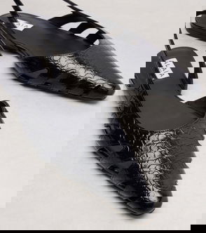 L.K.Bennett Jen Croc Leather Closed Court Shoes, Black