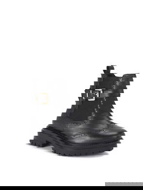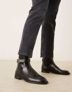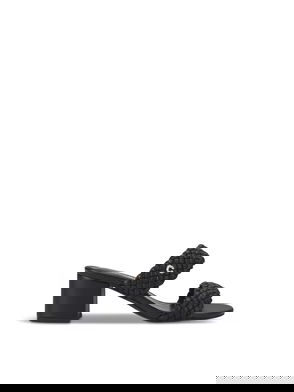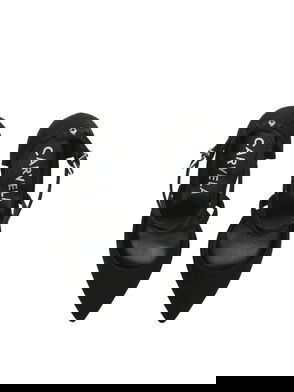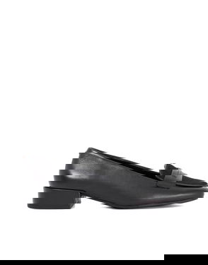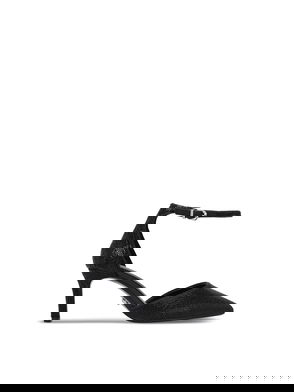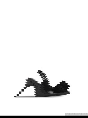 Featuring Kaia Gerber Leather Heeled Pointed Slingback With Hardware Detail In Black
