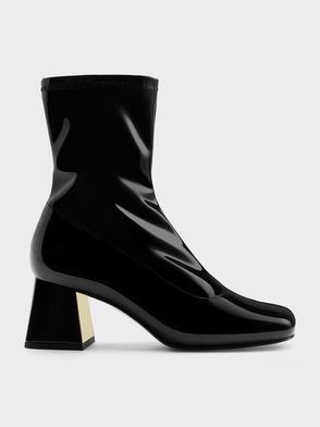 Jully Patent Metallic Trapeze Heel Ankle Boots