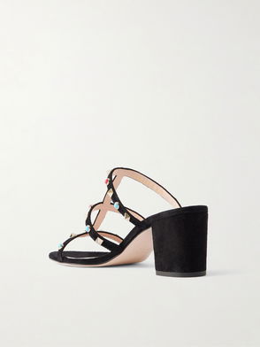 VLogo Embellished Leather-trimmed Striped Raffia Slides