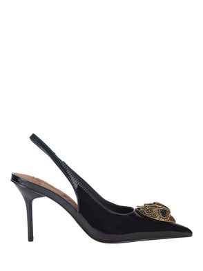 Large Eagle Patent Leather Slingback Court Shoes, Black