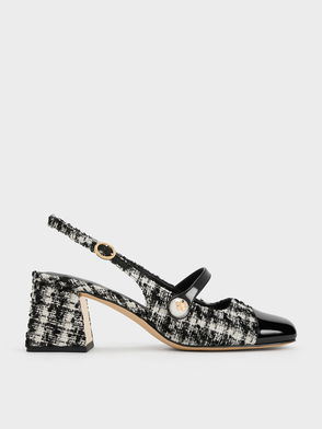 Aeryn Tweed Pearl-Embellished Slingback Pumps