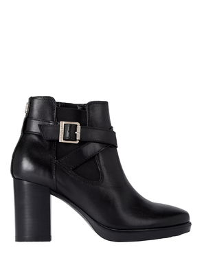 Silver2 Buckle Leather Ankle Boots, Black